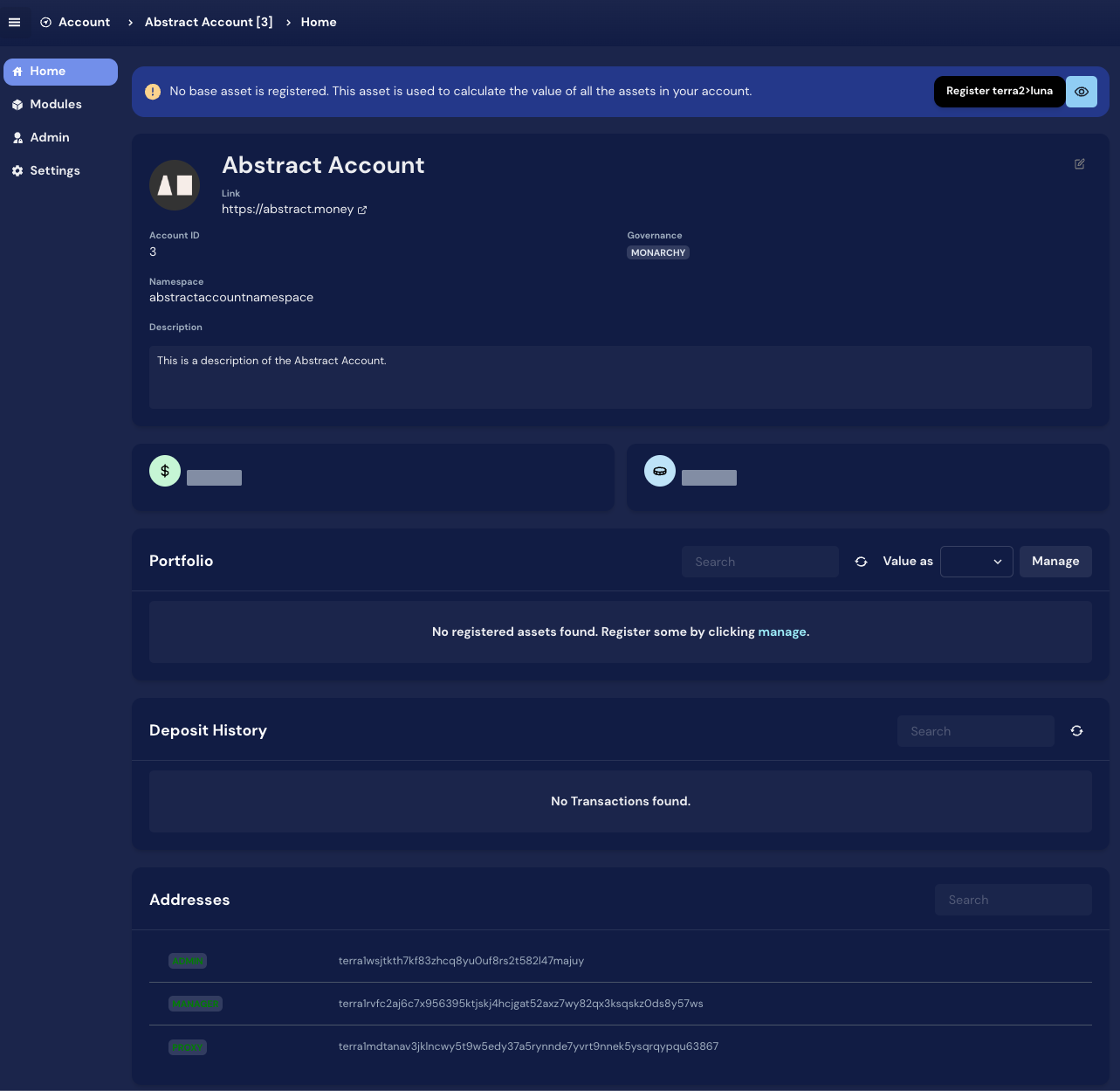 A contract that allows the installation and management of Abstract Modules via the Account Manager.